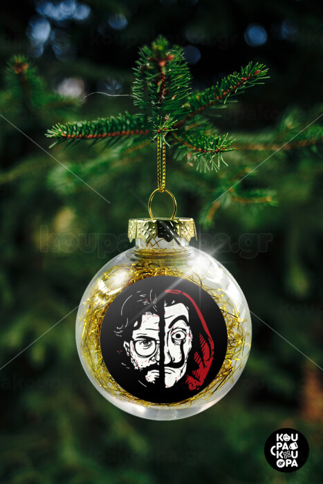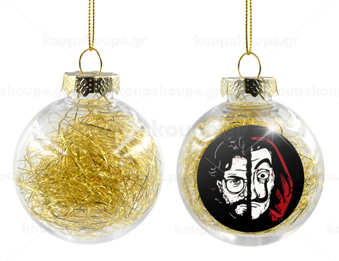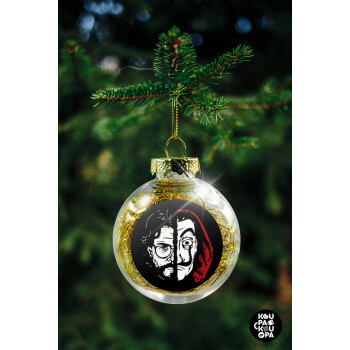El Professor, Transparent Christmas tree ball ornament with gold filling 8cm