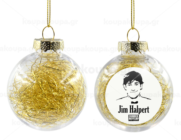The office Jim Halpert, Transparent Christmas tree ball ornament with gold filling 8cm