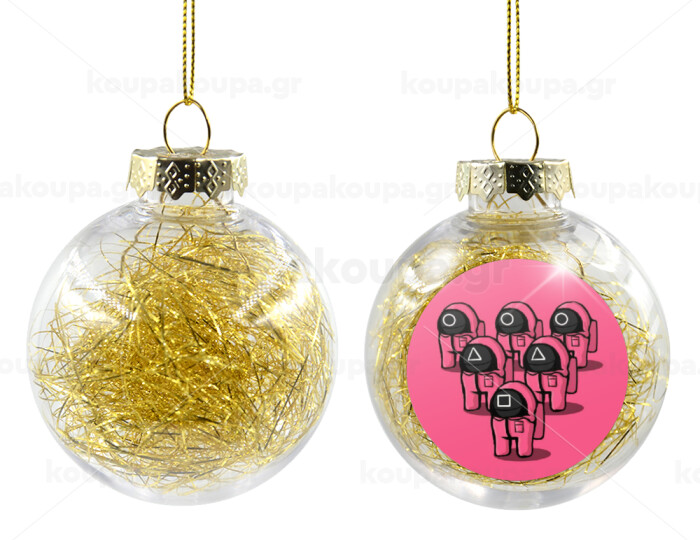 The squid game among us, Transparent Christmas tree ball ornament with gold filling 8cm