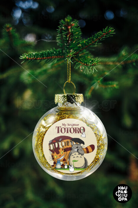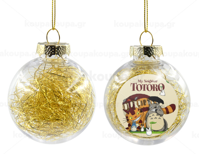 Totoro and Cat, Transparent Christmas tree ball ornament with gold filling 8cm