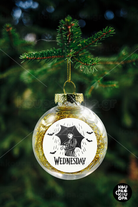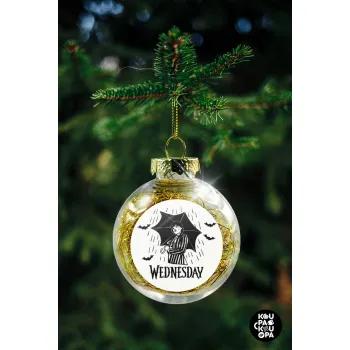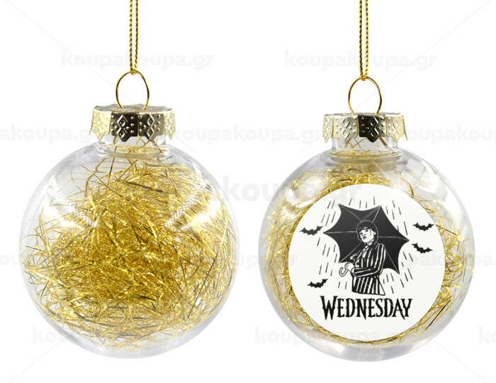 Wednesday Addams, Transparent Christmas tree ball ornament with gold filling 8cm