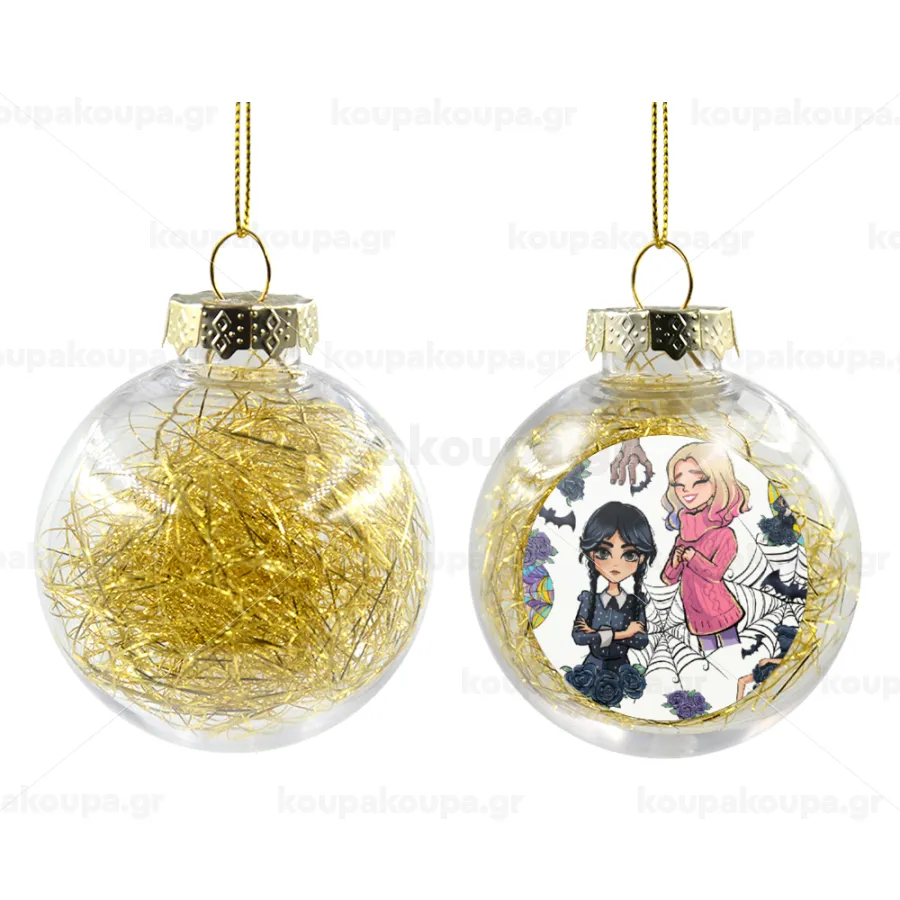 Wednesday and Enid Sinclair, Transparent Christmas tree ball ornament with gold filling 8cm