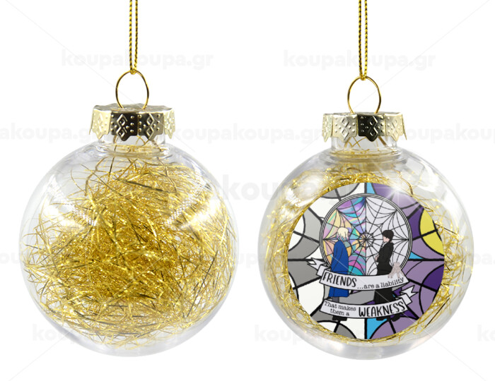 Wednesday window, Transparent Christmas tree ball ornament with gold filling 8cm