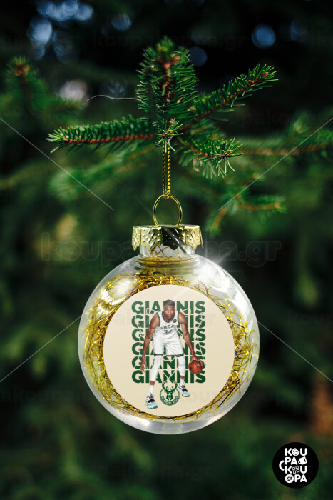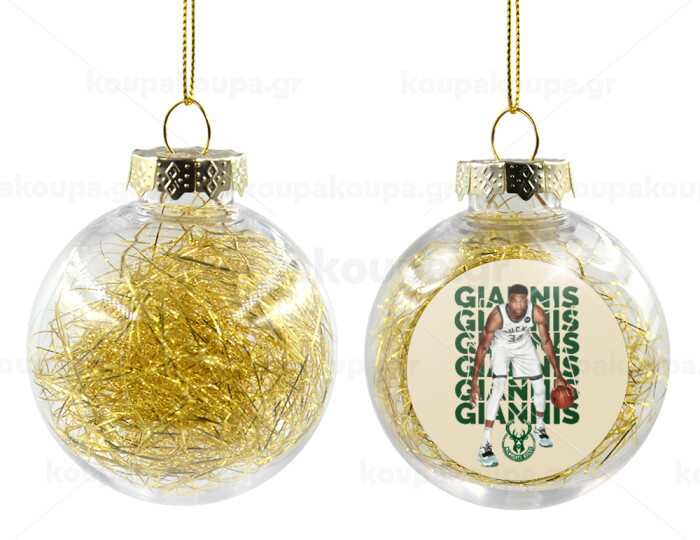 Giannis Antetokounmpo, Transparent Christmas tree ball ornament with gold filling 8cm
