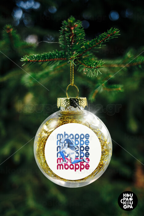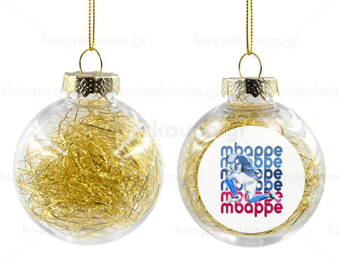 Kylian Mbappé, Transparent Christmas tree ball ornament with gold filling 8cm