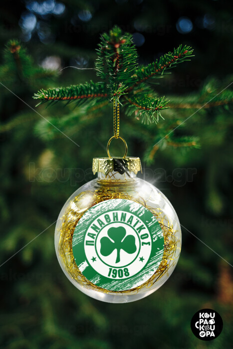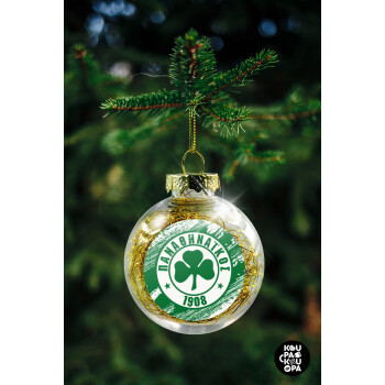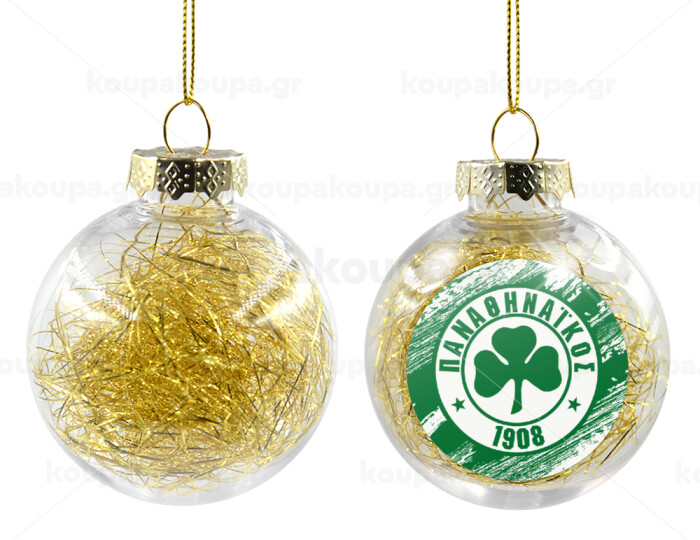 Π.Α.Ο., Transparent Christmas tree ball ornament with gold filling 8cm