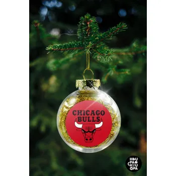 Chicago Bulls, Transparent Christmas tree ball ornament with gold filling 8cm