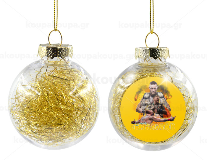 Conor McGregor Notorious, Transparent Christmas tree ball ornament with gold filling 8cm
