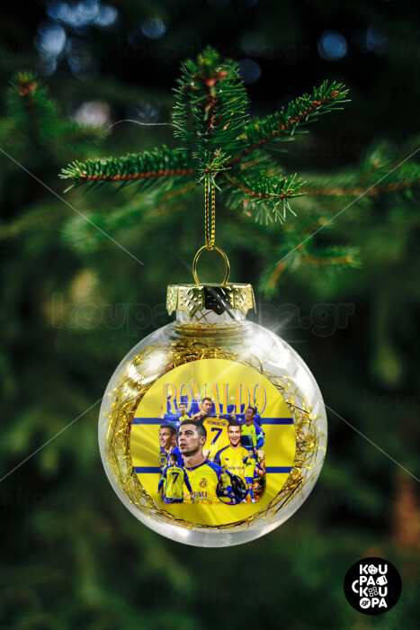 Cristiano Ronaldo Al Nassr, Transparent Christmas tree ball ornament with gold filling 8cm