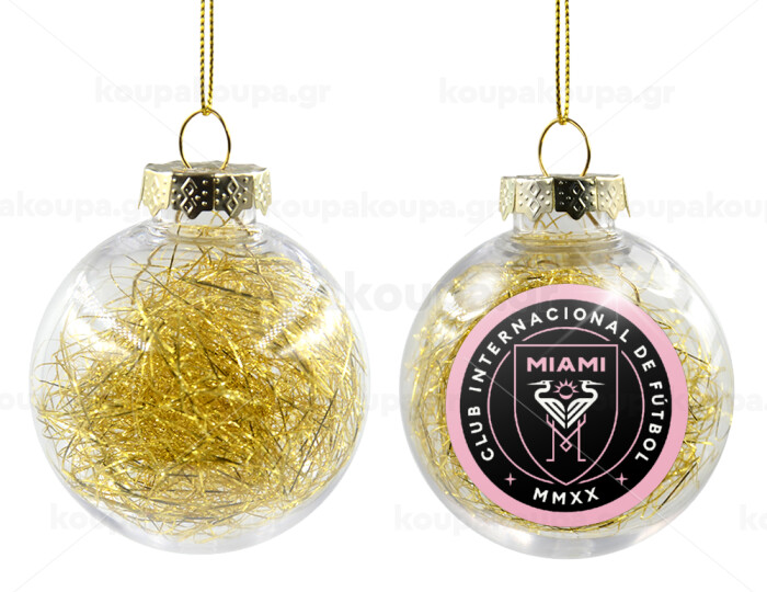 Inter Miami CF, Transparent Christmas tree ball ornament with gold filling 8cm