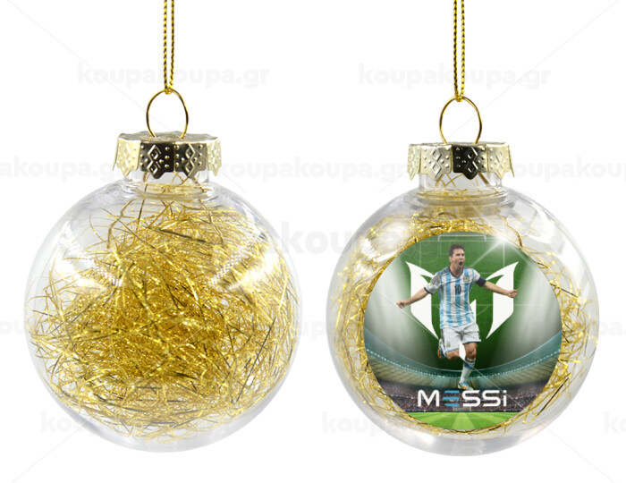 Lionel Messi, Transparent Christmas tree ball ornament with gold filling 8cm