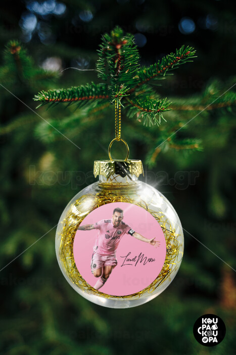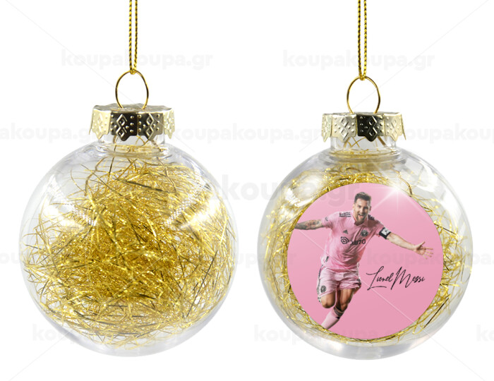 Lionel Messi inter miami jersey, Transparent Christmas tree ball ornament with gold filling 8cm
