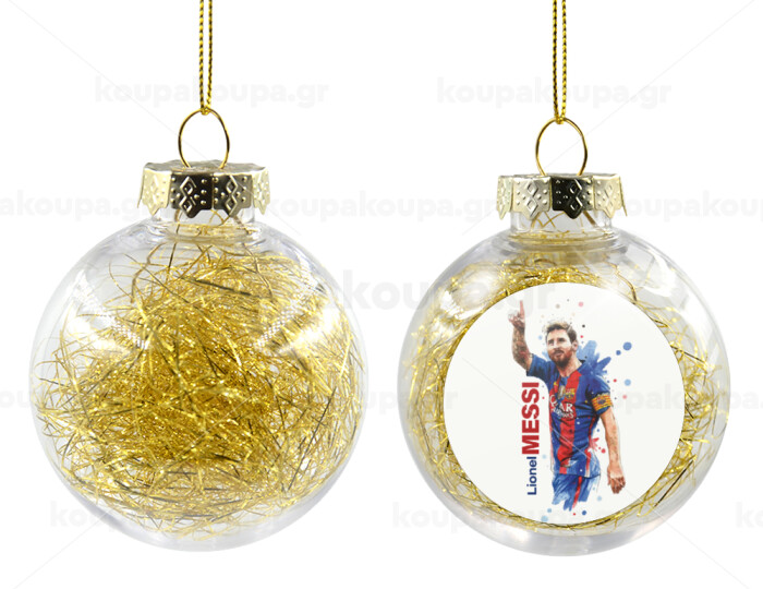Lionel Messi, Transparent Christmas tree ball ornament with gold filling 8cm