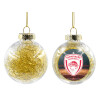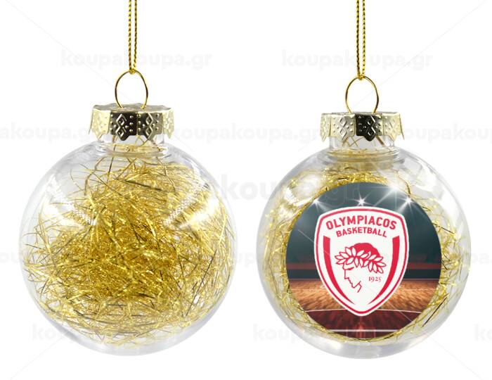 Olympiacos B.C., Transparent Christmas tree ball ornament with gold filling 8cm