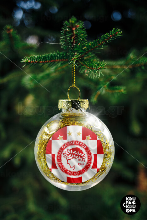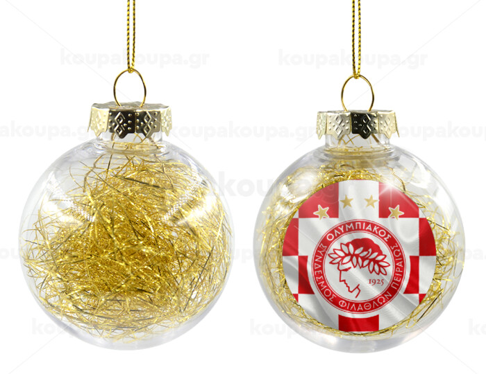 Olympiakos flag, Transparent Christmas tree ball ornament with gold filling 8cm