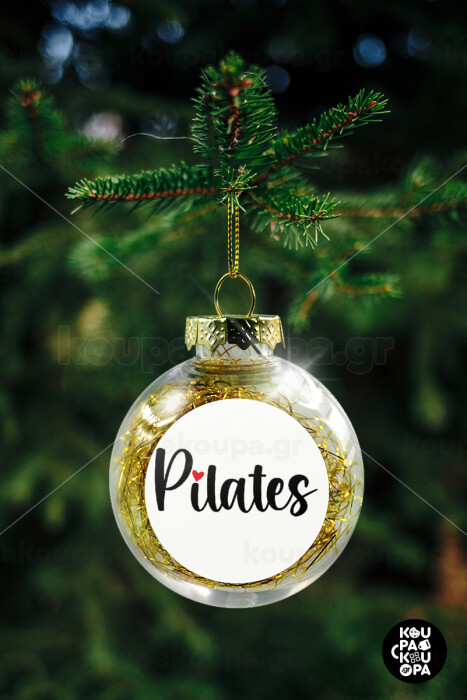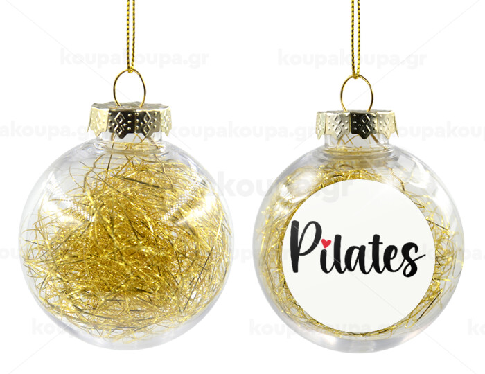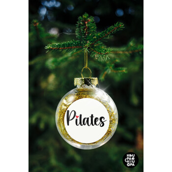 Pilates love, Transparent Christmas tree ball ornament with gold filling 8cm