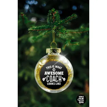This is what an awesome COACH looks like!, Transparent Christmas tree ball ornament with gold filling 8cm