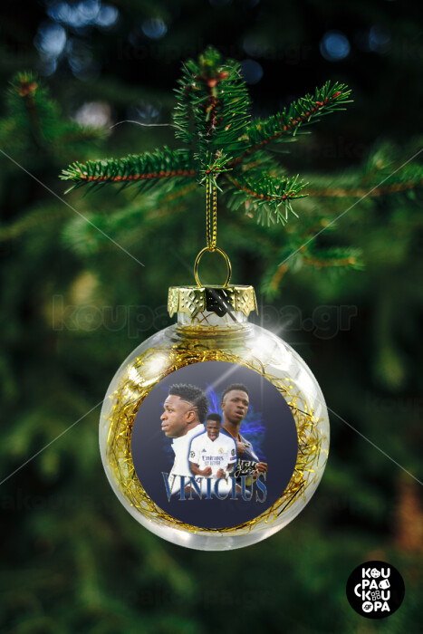 Vinicius Junior, Transparent Christmas tree ball ornament with gold filling 8cm