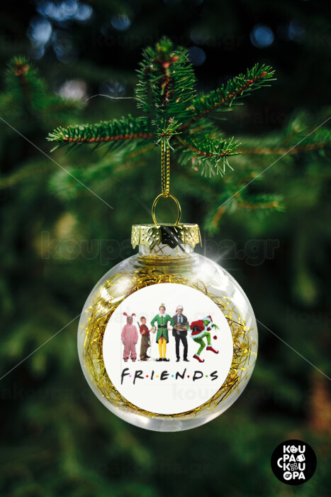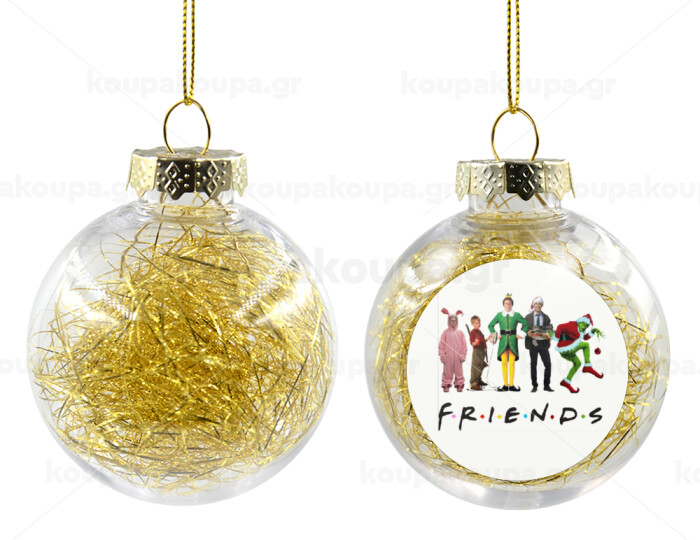 Christmas FRIENDS, Transparent Christmas tree ball ornament with gold filling 8cm