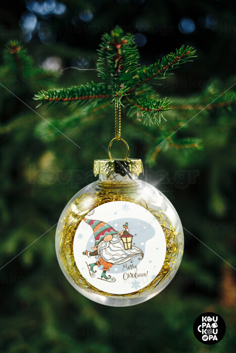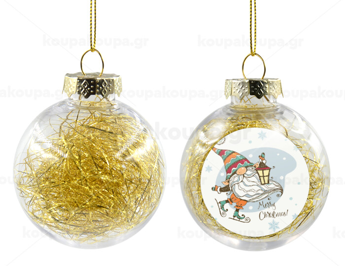 Christmas nordic gnomes, Transparent Christmas tree ball ornament with gold filling 8cm
