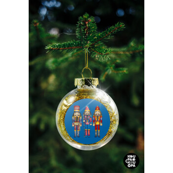 Christmas Nutcrackers, Transparent Christmas tree ball ornament with gold filling 8cm