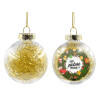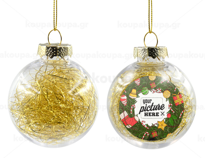 Χριστουγεννιάτικο διακοσμητικό στολίδι διάφανο με μεταλιζέ angel hair εσωτερικά σε μέγεθος 8cm, ελαφρύ σε μέγεθος για να μην κρεμάει το κλαδάκι, με κορδόνι στήριξης για τα κλαδάκια.