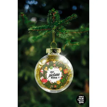 PHOTO Christmas twitch, Transparent Christmas tree ball ornament with gold filling 8cm