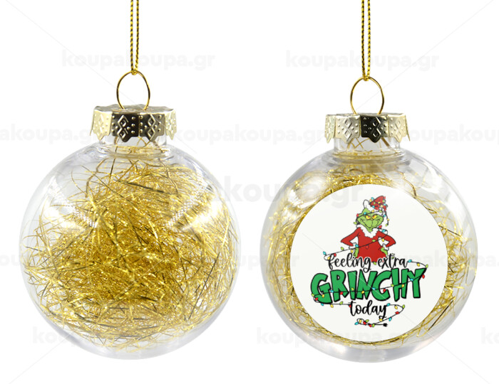 Grinch Feeling Extra Grinchy Today, Transparent Christmas tree ball ornament with gold filling 8cm