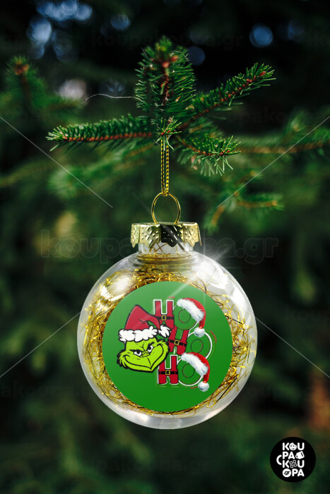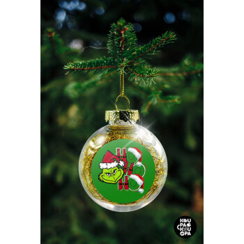 Grinch ho ho ho, Transparent Christmas tree ball ornament with gold filling 8cm