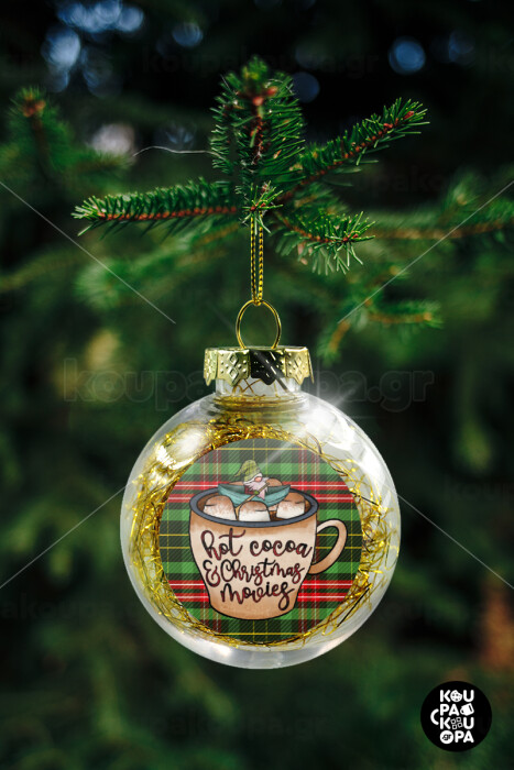 Hot Cocoa And Christmas Movies, Transparent Christmas tree ball ornament with gold filling 8cm
