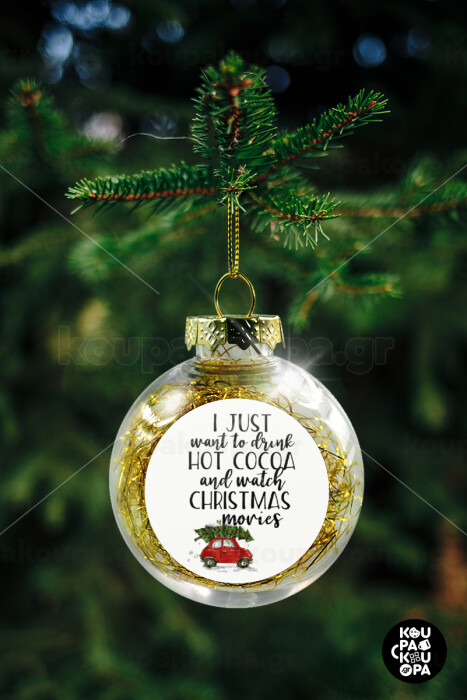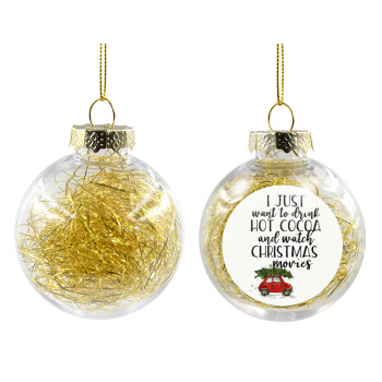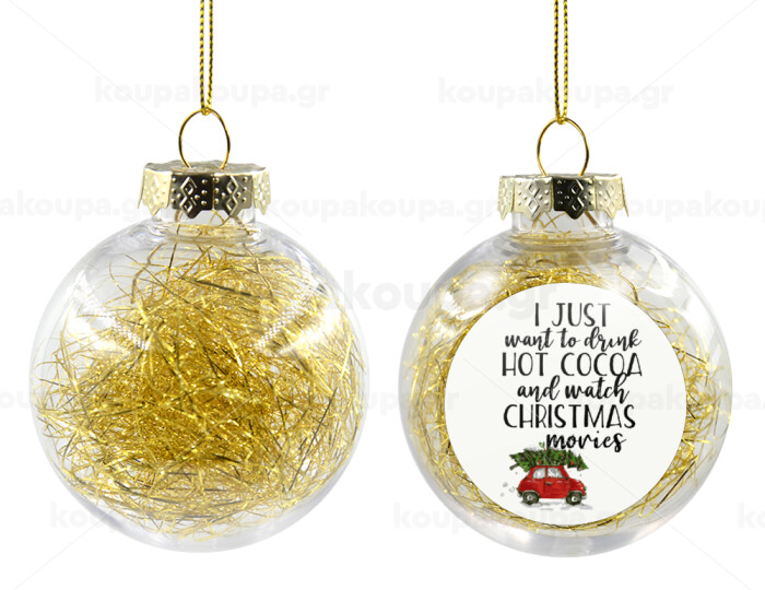 I just want to drink hot cocoa and watch christmas movies mini cooper, Transparent Christmas tree ball ornament with gold filling 8cm