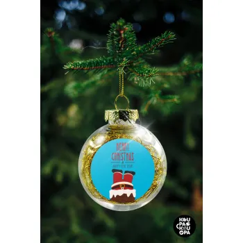 Merry christmas chimney, Transparent Christmas tree ball ornament with gold filling 8cm