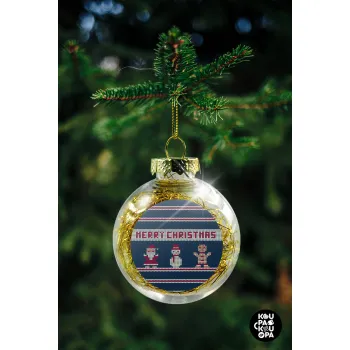 Merry christmas knitted, Transparent Christmas tree ball ornament with gold filling 8cm