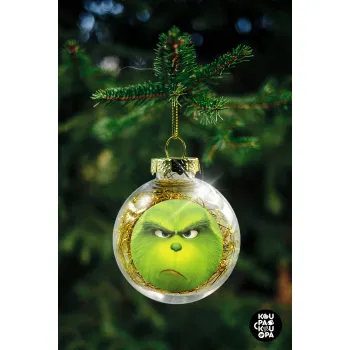 mr grinch, Transparent Christmas tree ball ornament with gold filling 8cm