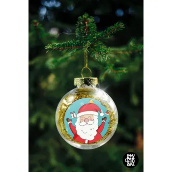 Santa Claus gifts, Transparent Christmas tree ball ornament with gold filling 8cm
