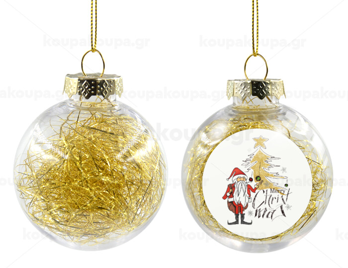 Santa Claus gold, Transparent Christmas tree ball ornament with gold filling 8cm