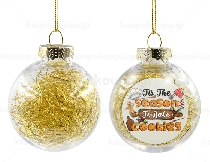 Tis The Season To Bake Cookies, Transparent Christmas tree ball ornament with gold filling 8cm