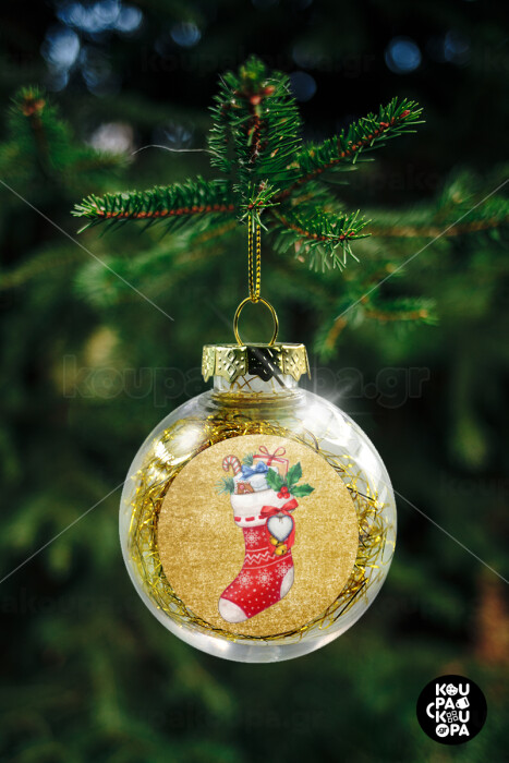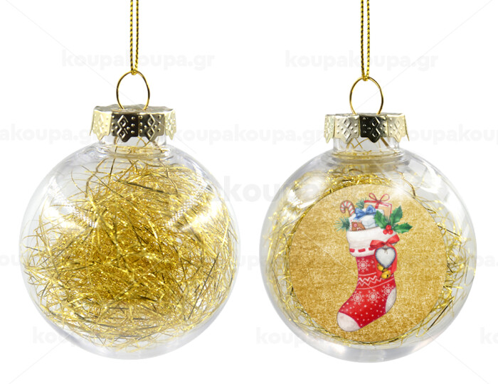 Xmas boot, Transparent Christmas tree ball ornament with gold filling 8cm
