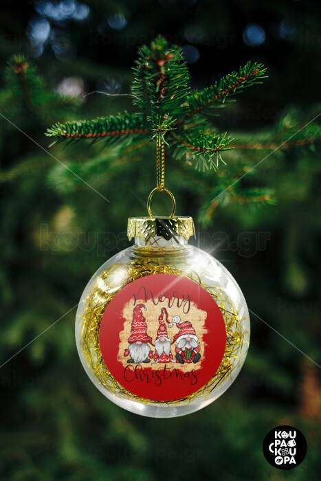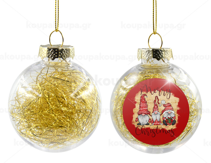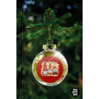 Xmas Elves, Transparent Christmas tree ball ornament with gold filling 8cm