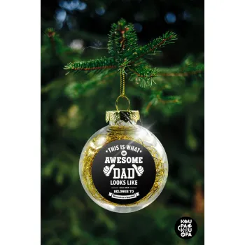 This is what an Awesome DAD looks like, Transparent Christmas tree ball ornament with gold filling 8cm