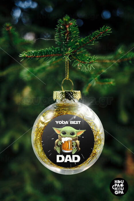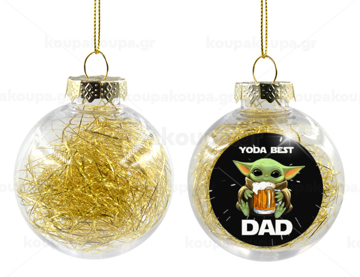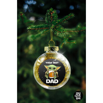 Yoda Best Dad, Transparent Christmas tree ball ornament with gold filling 8cm