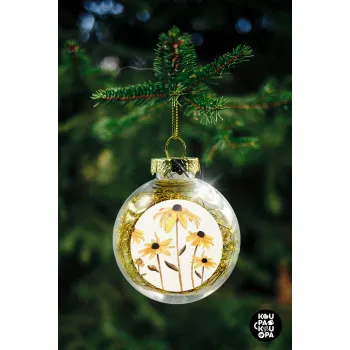 Daisies flower, Transparent Christmas tree ball ornament with gold filling 8cm