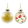 Χριστουγεννιάτικο διακοσμητικό στολίδι διάφανο με μεταλιζέ angel hair εσωτερικά σε μέγεθος 8cm, ελαφρύ σε μέγεθος για να μην κρεμάει το κλαδάκι, με κορδόνι στήριξης για τα κλαδάκια.
