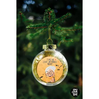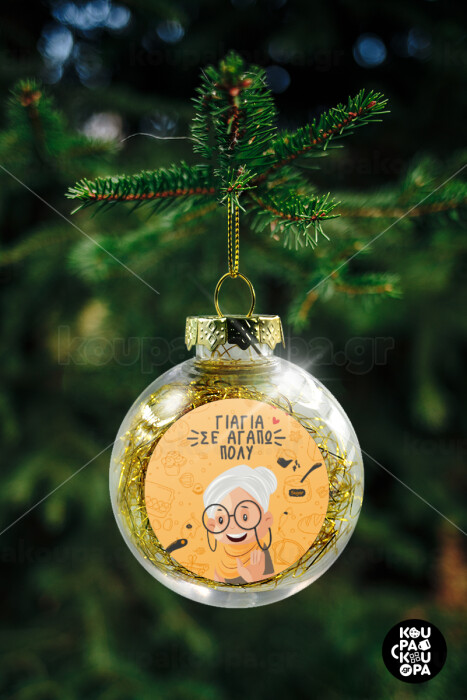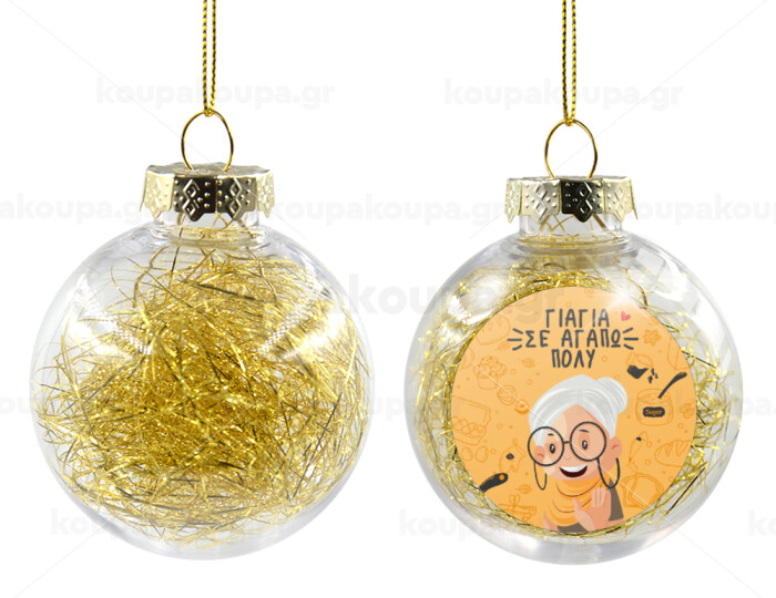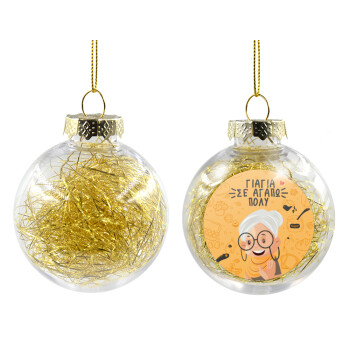 Γιαγιά σε αγαπώ πολύ!, Transparent Christmas tree ball ornament with gold filling 8cm