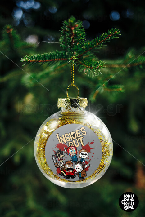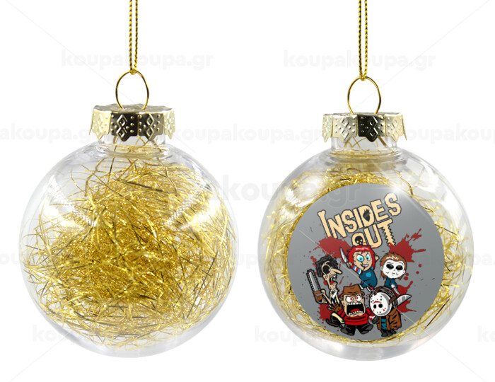 Halloween Inside out, Transparent Christmas tree ball ornament with gold filling 8cm