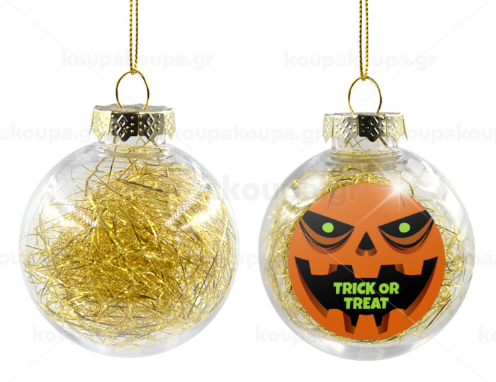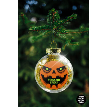 Halloween trick or treat Pumpkins, Transparent Christmas tree ball ornament with gold filling 8cm