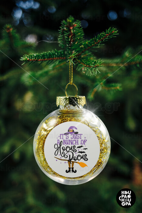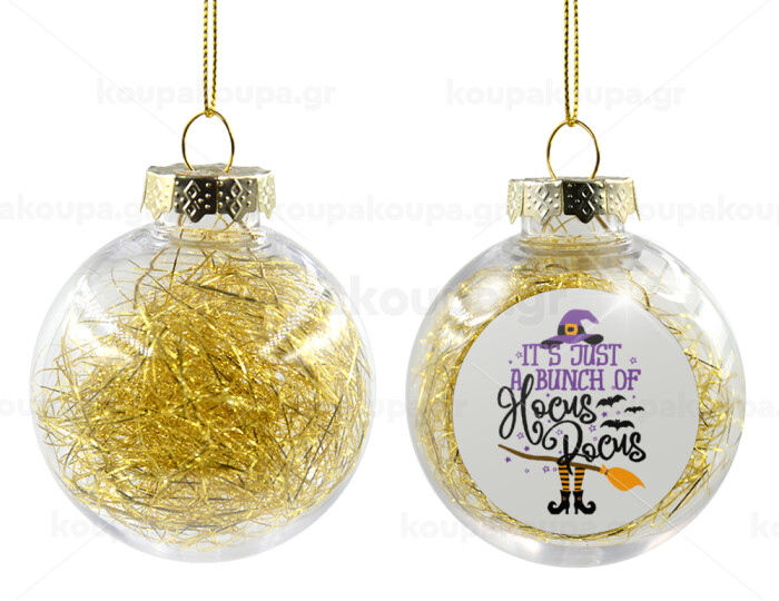 It's just a bunch of hocus pocus - halloween, Transparent Christmas tree ball ornament with gold filling 8cm