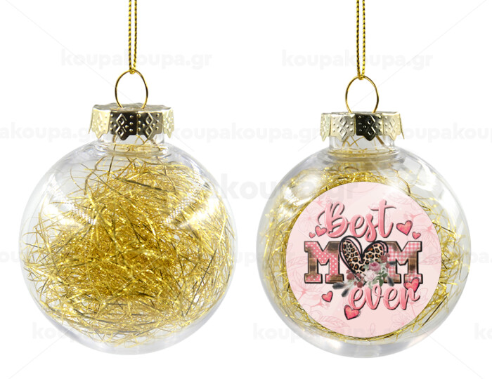 Best mom ever Mother's Day, Transparent Christmas tree ball ornament with gold filling 8cm
