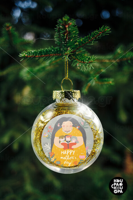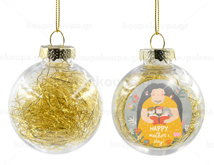 Cute mother reading book, happy mothers day, Transparent Christmas tree ball ornament with gold filling 8cm