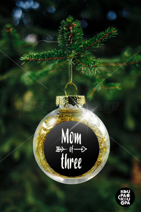 Mom of three, Transparent Christmas tree ball ornament with gold filling 8cm